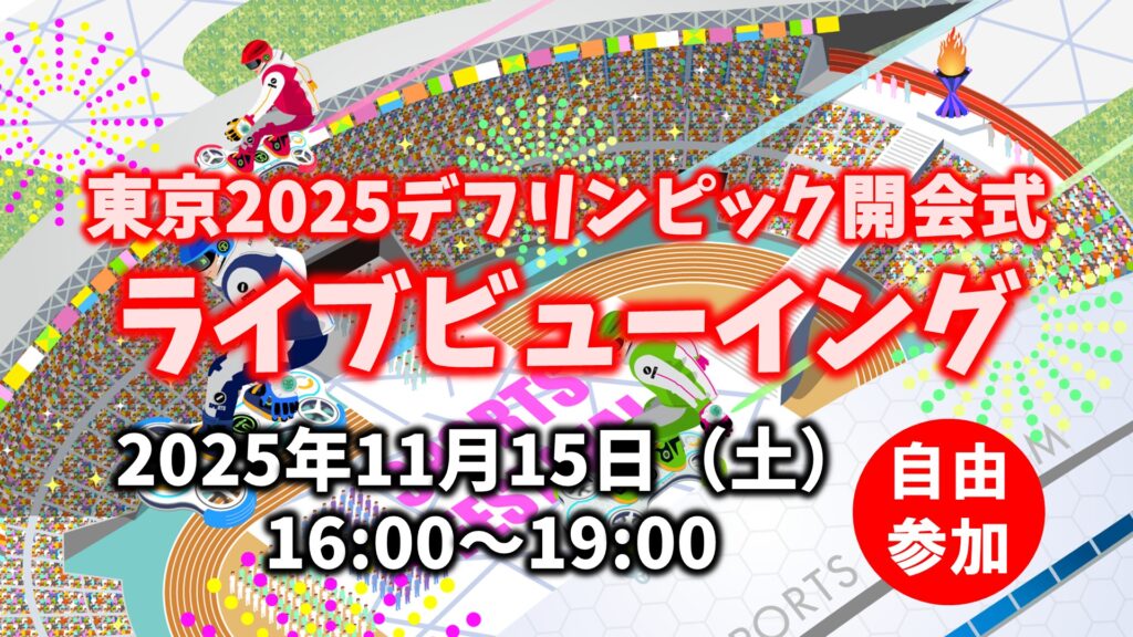 詳細は、当協会の「東京2025デフリンピック開会式ライブビューイング」ページをご参照ください。→こちらから