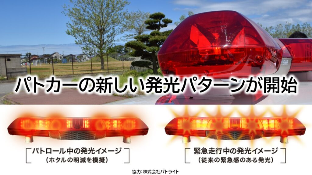 埼玉県警察本部のパトカーの新しい発光パターンが開始されました。新しい発光パターンの様子を掲載しています。